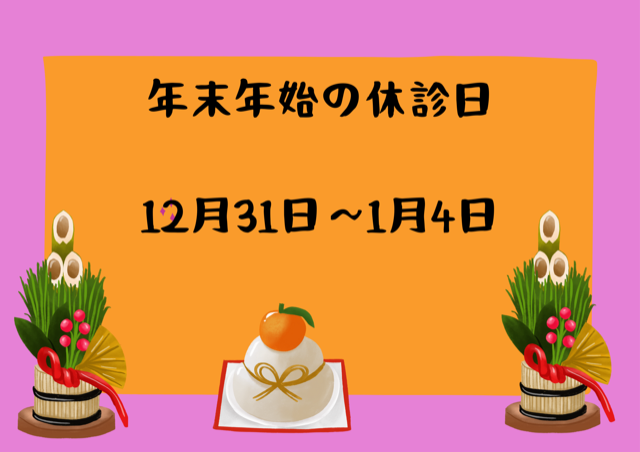12月30日午後から1月4日まで 休診とさせていただきます。