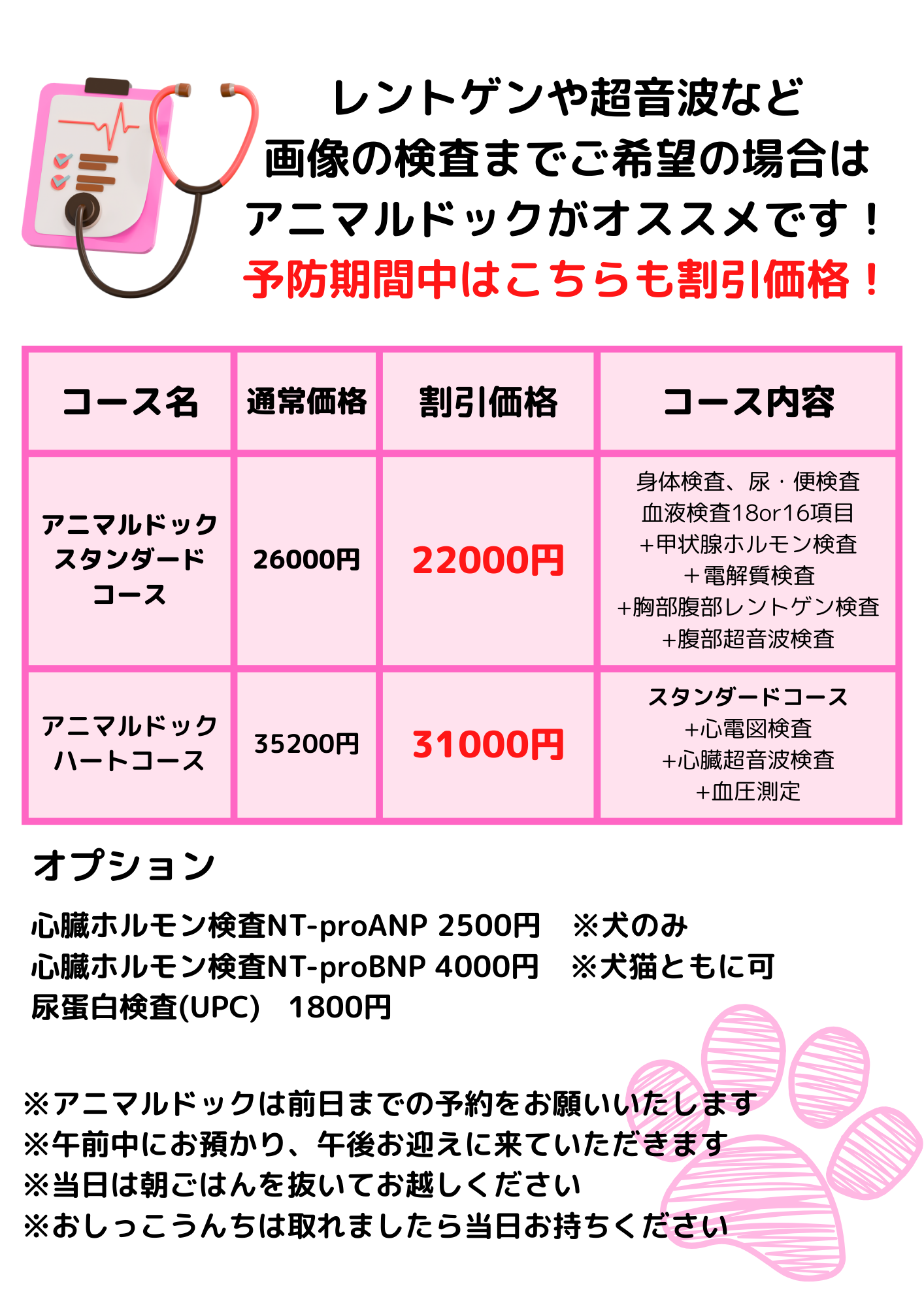アニマルドックは半日お預かりをしますので、前日までにご連絡ください。