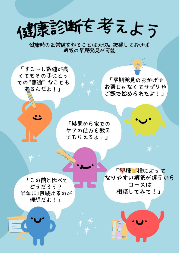 健康診断は予防接種の際に少しだけお待ちいただければその場で実施できます。